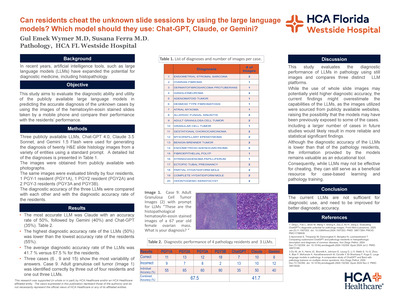 Method: The twenty cases, including a variety of entities, were collected from teaching sets of non-HCA patients and public available domains, which are used for unknown slide sessions for residents. Three publicly available LLMs, Chat-GPT 4.0, Claude 3.5 Sonnet, and Gemini 1.5 Flash were used for generating the diagnosis of these H-E slide histology images, using a standard prompt. The same cases were evaluated blindly by four residents. The accuracy of the three LLMs were compared with each other and with the accuracy rate of the residents.