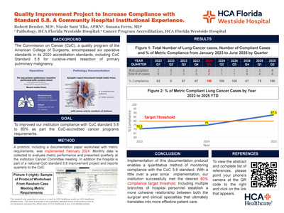 Method: Included in the study were patients undergoing curative intent lung resection for lung cancer. A protocol, including a documentation paper worksheet with metric requirements, was implemented in February 2024. Monthly data was collected to evaluate metric performance and presented quarterly at our institution’s Cancer Committee meeting. The hospital is also part of a national CoC standard 5.8 improvement project and reports quarterly to the CoC.