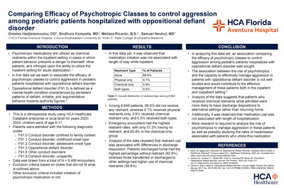 Comparing Efficacy of Psychotropic Classes to Control Aggression Among Pediatric Patients Hospitalized with Oppositional Defiant Disorder