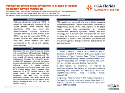 Platypnea-orthodeoxia syndrome (POS) is defined by dyspnea and hypoxemia in the upright position, which improves upon recumbency. While often linked with hepatopulmonary syndrome, intracardiac etiologies, particularly a patent foramen ovale (PFO), may also be responsible. PFOs are typically managed with device closure, and while rare, device migration can occur unbeknownst to the patient with resultant critical sequelae.