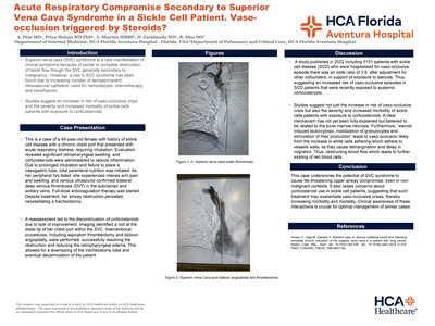 Acute Respiratory Compromise Secondary to Superior Vena Cava Syndrome in a Sickle Cell Patient. Vaso-occlusion triggered by Steroids?