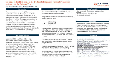 Background: Treatment-resistant depression (TRD) remains a significant unmet need, affecting about one third of patients with major depressive disorder who fail to respond to two or more antidepressant trials. There is a need for new pharmacological approaches. Liafensine (also known as DB104) is a first-in-class triple reuptake inhibitor targeting serotonin, norepinephrine, and dopamine transporters, whose development has recently incorporated a precision medicine approach. Mechanism of Action: Liafensine inhibits reuptake of all three major monoamines (serotonin, norepinephrine, and dopamine) distinguishing it from existing SSRIs, SNRIs, or other agents which typically target one or two systems. A genetic biomarker, ANK3 (also called DGM4), has been identified as predictive of treatment response. Approximately 20% of TRD patients carry the ANK3-positive genotype, which appears to correlate with improved efficacy in clinical trials. Clinical Evidence: -Phase 2b ENLIGHTEN trial → enrolled 189 ANK3-positive treatment-resistant depression patients. Patients were then randomized to receive either: liafensine 1 mg, liafensine 2 mg, or placebo daily, over 6 weeks. -The primary outcome (change in the Montgomery-Åsberg Depression Rating Scale (MADRS) from baseline to week 6), → revealed a mean reduction of −15.4 in liafensine-treated patients vs −11.0 in placebo, resulting in a mean treatment difference of −4.4 points (95% CI, −7.6 to −1.3; p = .006). -Secondary outcomes (Clinical Global Impression-Severity, Clinical Global Impression-Improvement, Sheehan Disability Scale) were also positive for liafensine. Patients began to improve during the first week. -Research shows ideal dosing is low: both 1 mg and 2 mg daily showed similar efficacy, with better tolerability at 1 mg. -Limitations: relatively short trial duration (6 weeks), limited long-term data, and the fact that efficacy was only demonstrated in the ANK3-positive subgroup (populations without this biomarker in earlier trials did not show benefit). Conclusion: Research shows liafensine is a new drug therapy for treatment resistant depression when applied in a biomarker-guided fashion. The ENLIGHTEN trial shows clinically meaningful benefits with good safety in ANK3‐positive patients. Further longer-term trials and studies in diverse populations are needed to establish its place in practice.