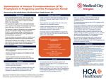Background: Venous thromboembolism (VTE), which includes deep vein thrombosis (DVT) and pulmonary embolisms (PE) continues to be a leading cause of maternal mortality (MM) in the United States. VTE accounts for roughly 9-10% of all maternal deaths. Other countries have adopted anticoagulation protocols to reduce MM rates, but the US has yet to follow suit. The American College of Obstetricians and Gynecologists (ACOG), the American College of Chest Physicians (CHEST), and the Royal College of Obstetricians and Gynaecologists (RCOG) all vary in their guidelines for thromboembolism prophylaxis. Patients who deliver by Cesarean section (C-section) have higher incidences of MM due to pulmonary embolism. Specifically for patients who undergo a C-section, ACOG recommends only mechanical compression devices along with a risk scoring system, which is not standardized across hospitals. Objective: Improve existing data regarding populations at risk for VTE consequences; Create a standard practice across the nation for anticoagulation in those with increased risk of MM due to VTE. Methods: Develop a QI project in order to establish a protocol and track outcomes. Perform a retrospective analysis of patients with these risk factors (listed below) within our Graduate Medical Education (GME) population to determine our pre-protocol VTE risk at Medical City Women’s Clinic. Create a protocol in which high-risk patients receive low molecular weight heparin (LMWH) for VTE prophylaxis. Track outcomes and compare VTE risk in this cohort compared to our population baseline Eventually expand to other institutions to improve the power of the study and MM rates amongst the general public in the United States. Risk Factors: Pre-eclampsia diagnosis Cesarean section Postpartum hemorrhage Postpartum infection such as endometritis BMI > 30 Personal history of thrombosis Multiple gestation Anticipated Results: We anticipate that with this protocol, patients will experience reduced rates of VTE consequences in the postpartum period. We also anticipate that with a strong enough study, our findings would allow us to make a case for standardized VTE prophylaxis guidelines by the American College of Obstetricians and Gynecologists (ACOG).
