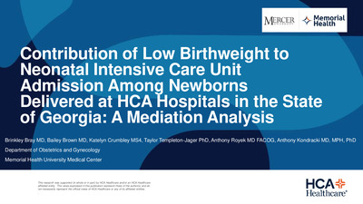 Contribution of Low Birthweight to Neonatal Intensive Care Unit Admission Among Newborns Delivered at HCA Hospitals in the State of Georgia: A Mediation Analysis