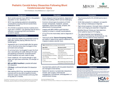 - First Place: Pediatric Carotid Artery Dissection Following Blunt Cerebrovascular Injury.