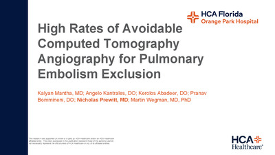 - Winner: High Rates of Avoidable Computed Tomography Angiography for Pulmonary Embolism Exclusion
