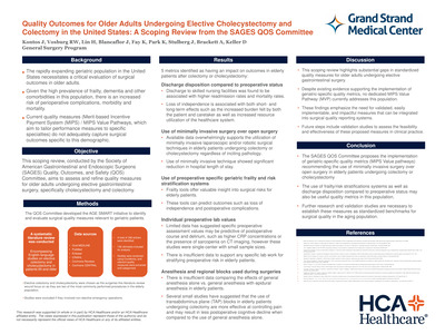 - Best Poster - Research: Quality Outcomes for Older Adults Undergoing Elective Cholecystectomy and Colectomy in the United States: A Scoping Review from the SAGES QOS Committee - Jeannie Kontos, MD. General Surgery