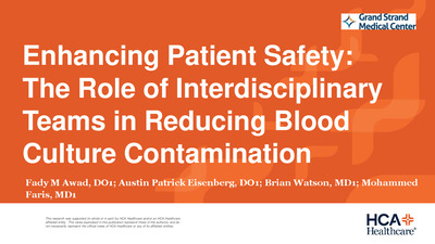 - Best Quality Improvement Podium: Enhancing Patient Safety: The Role of Interdisciplinary Teams in Reducing Blood Culture Contamination - Fady Awad, DO; Internal Medicine